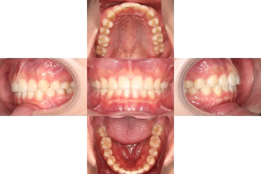 治療開始時には、軽度の過蓋咬合と上下顎歯列全体に隙間が認められました。