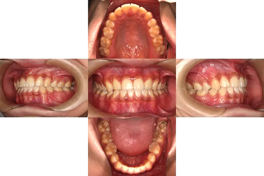 患者様は、前歯の反対咬合と上の前歯の凸凹を治すことで、将来的に歯の持ちを長くし、また見た目を良くしたいと当院に来院されました。